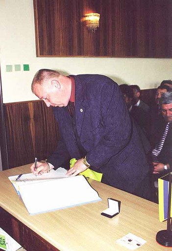 Ľuboš Čurma, generálny riaditeľ B.C.D.1. s. r. o. pri zápise do pamätnej knihy
