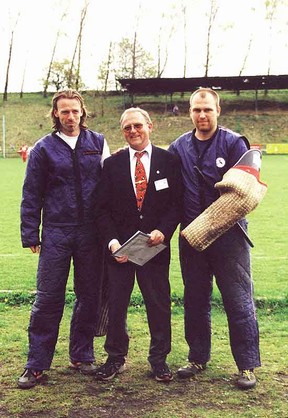 Figuranti majstrovstiev spolu s rozhdocom obrany: z¾ava: Robert Fagoš (CZ), rozhodca Udo Hermann (D) a Martin Tóth (SK)